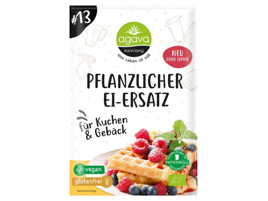 Naše rostlinná náhražka vajec slouží jako pojivo, a proto může být použita pro palačinky, vafle, koláče, pečivo a mnoho dalšího. Je také vhodná pro slané pokrmy.