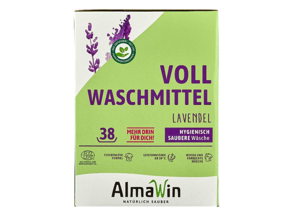 Vysoce účinný prací prostředek AlmaWin se vyznačuje vynikající prací schopností již od 30 °C. Prací prostředek vyrobený z aktivního kyslíku odstraňuje i obtížné skvrny a neumožňuje, aby bílé prádlo zešedlo. Obsahuje geneticky nemodifikované enzymy, stejně jako rýžový škrob a zajišťuje dobrou přilnavost a snadné žehlení.