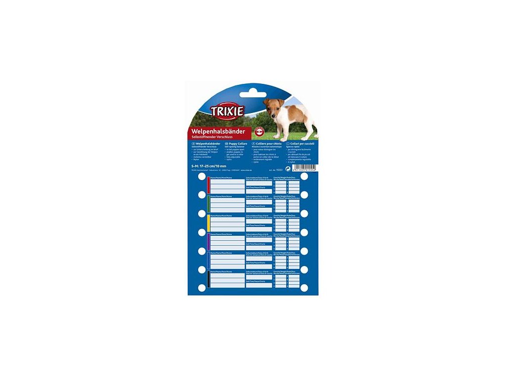 Balení nylon.rozeznávacích obojků pro štěňata S-M 17-25cm/10mm, čn,čv,md,zel,or,fi