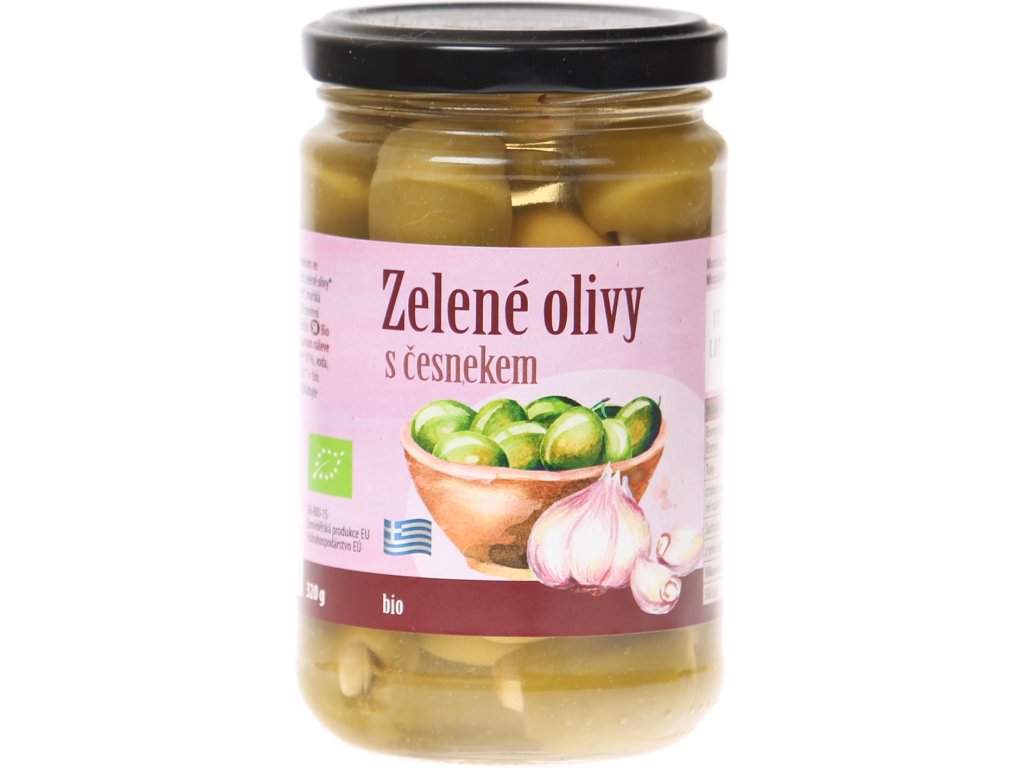 BIO Olivy zelené plněné česnekem 320 g – BIO NEBIO
