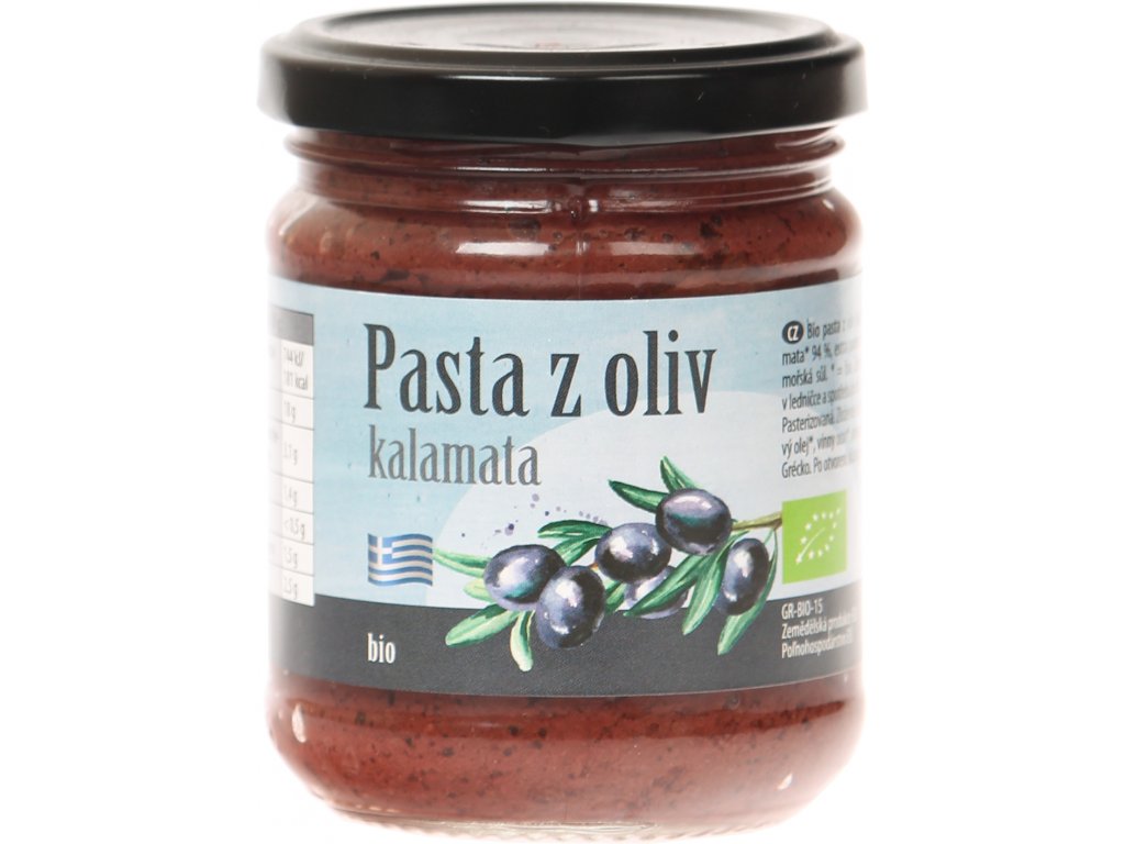 BIO olivová pasta kalamata je vyrobena z kvalitních oliv s bohatým aroma a plnou chutí. Skvělá na bagety, tousty, domácí pizzu, do omáček, salátů i těstovin. Prémiová kvalita bez konzervantů.