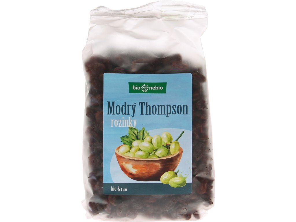 BIO rozinky Modrý Thompson jsou známé svou výraznou chutí a tmavší barvou. Bohaté na přírodní cukry, minerály a antioxidanty. Ideální pro zdravé mlsání, dezerty, smoothie, domácí pečení i granolu. 100% přírodní produkt bez přidaného cukru.