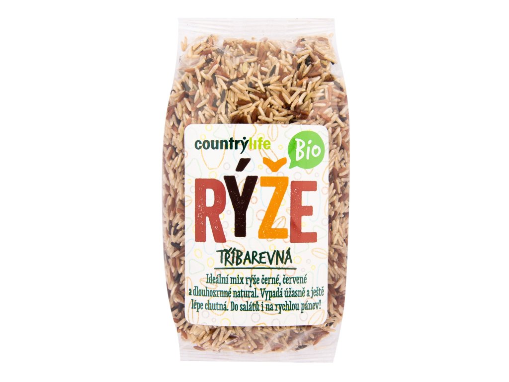 BIO tříbarevná rýže COUNTRY LIFE je kombinace bílé, červené a černé rýže s jemně oříškovou chutí. Skvělá do salátů, rizot, stir-fry, poke bowlů, kari a moderní asijské kuchyně. Bohatá na vlákninu, minerály a antioxidanty. Prémiová BIO kvalita pro zdravé vaření.