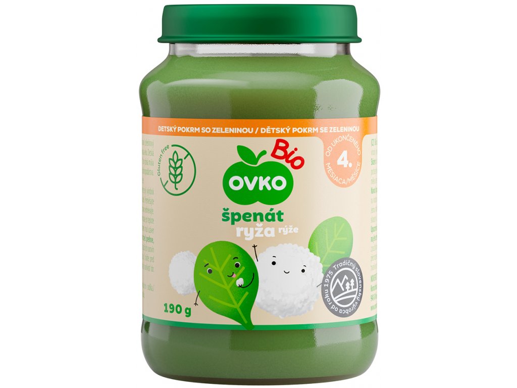 Dětský příkrm se špenátem, zahuštěný celozrnnou rýžovou moukou. Od ukončeného 4. měsíce. HMOTNOST: 190 g ZEMĚ PŮVODU: Slovensko SLOŽENÍ: pitná voda, špenát* 22 %, celozrnná rýžová mouka* 8 %. Složky označené * pocházejí z kontrolovaného ekologického zemědělství. UPOZORNĚNÍ PRO ALERGIKY: Výrobek může obsahovat stopy mléka a celeru. VÝŽIVOVÉ ÚDAJE NA 100 g: