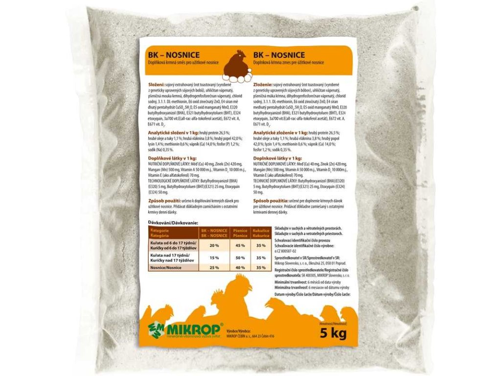 Nosnice Mikrop je kvalitní doplňkové krmivo sloužící jako zdroj bílkovin, minerálních látek a vitamínů. Obsahuje vysoký podíl dusíkatých látek a esenciálních aminokyselin pocházejících z vysoce kvalitního sójového extrahovaného šrotu, které jsou nezbytné pro správnou výživu drůbeže.