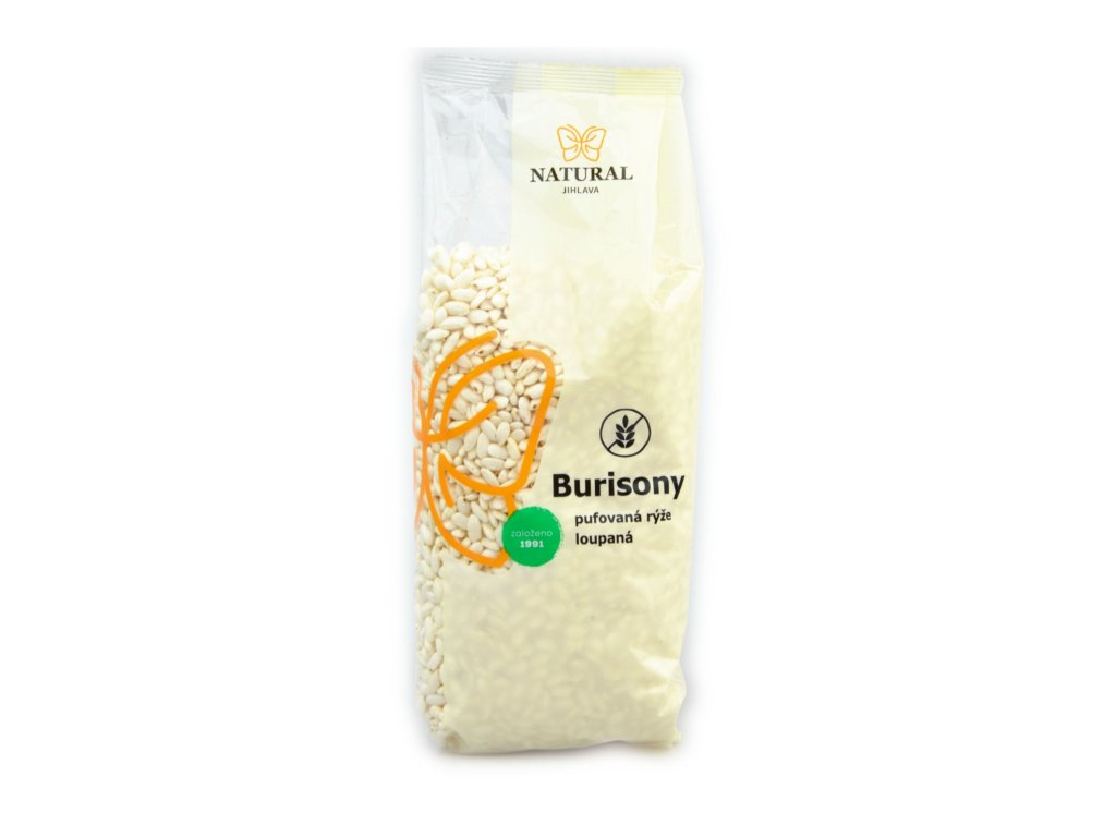 Složení: rýže loupaná 100%. Burisony možná znáte pod názvem pufovaná rýže. Jinými slovy je to rýže, která se postupně zahřívá až praskne. Výhodou je, že si tím zachová veškeré živiny, které rýže přirozeně obsahuje. Burisony stejně jako rýže neobsahují lepek. Burisony můžete použít do těsta, knedlíků, nebo jako zahuštění do polévek. Dovolíme si malou inspiraci. Kmínovou polévku zvládne snad každý, a právě burisony se k ní skvěle hodí.Nutriční hodnoty