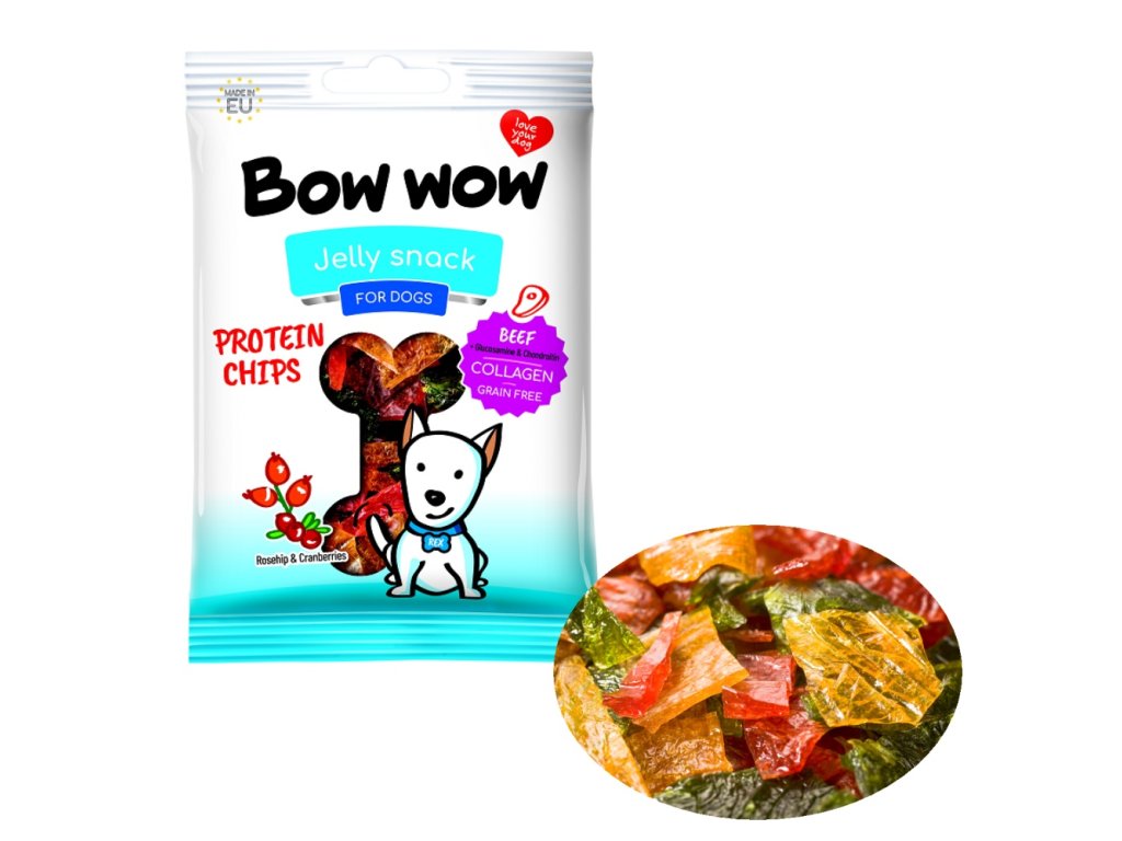 Pochoutka pro psy ve tvaru proteinových želatinových chipsů pro silné klouby.