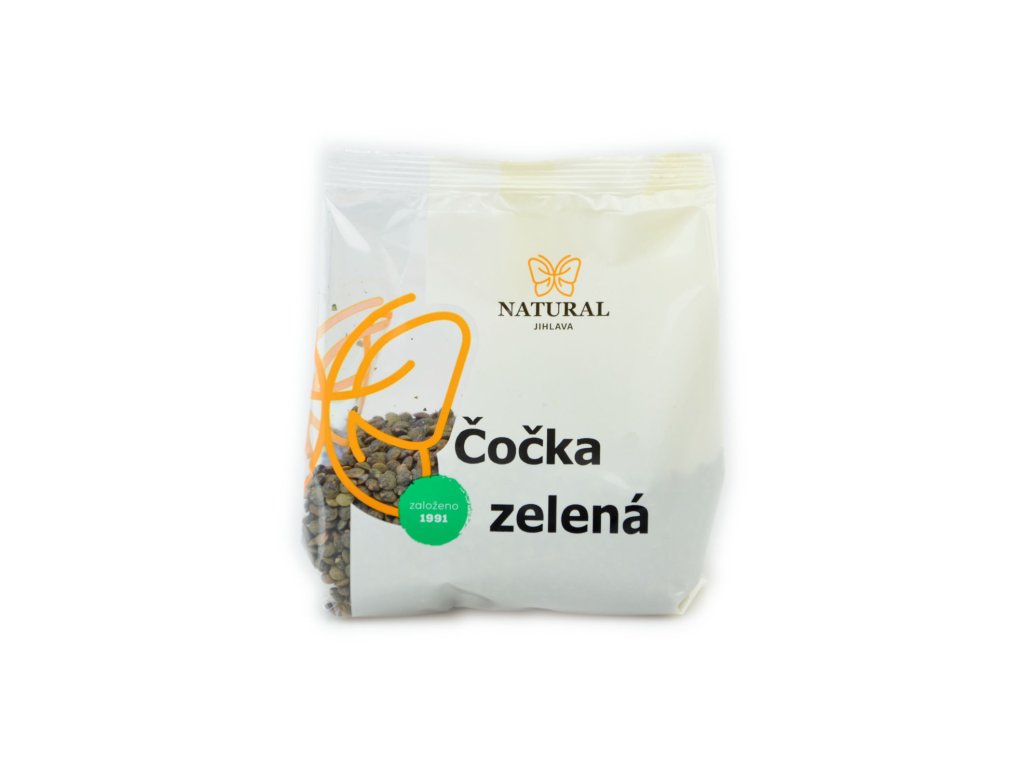 Složení: zelená čočka Zelená čočka je bohatá na kyselinu listovou a železo, obě látky pomáhají předcházet chudokrevnosti. Čočka je jednou z nejstarších pěstovaných plodin. Tuto čočku je nutné před vařením namočit do studené vody.Nutriční hodnoty