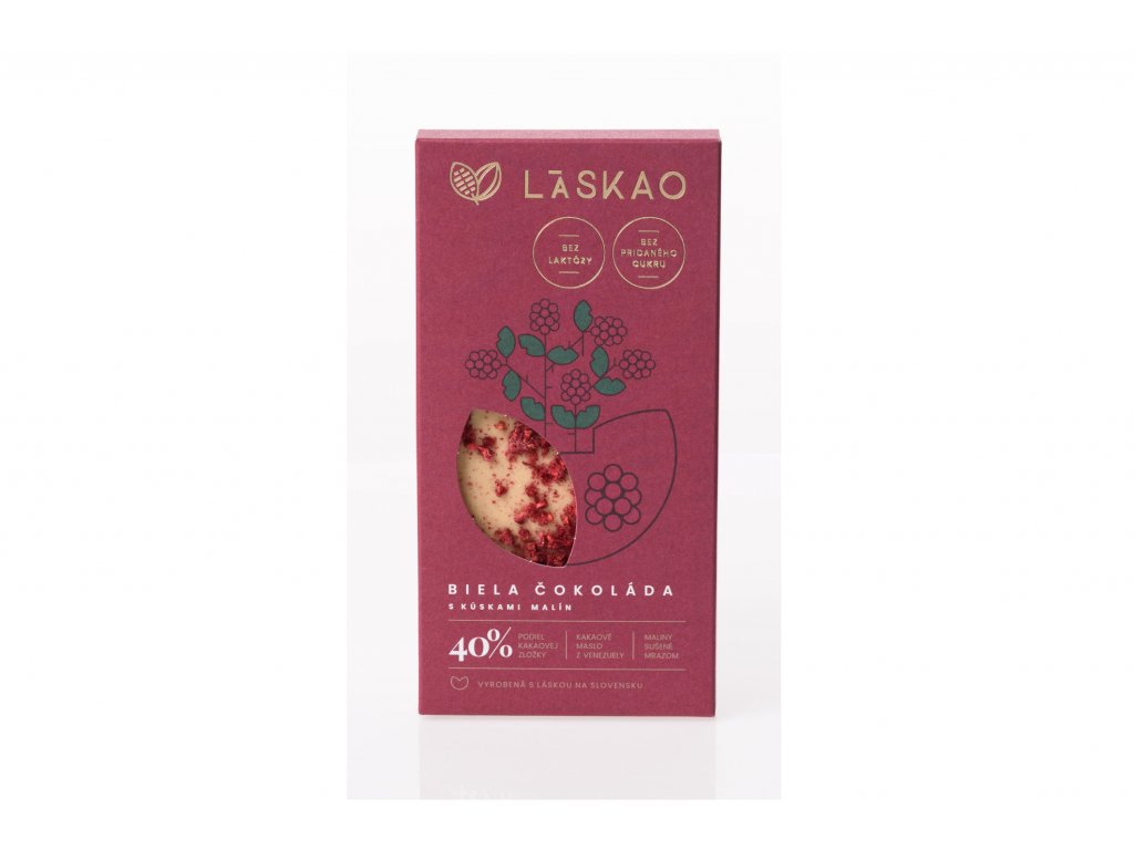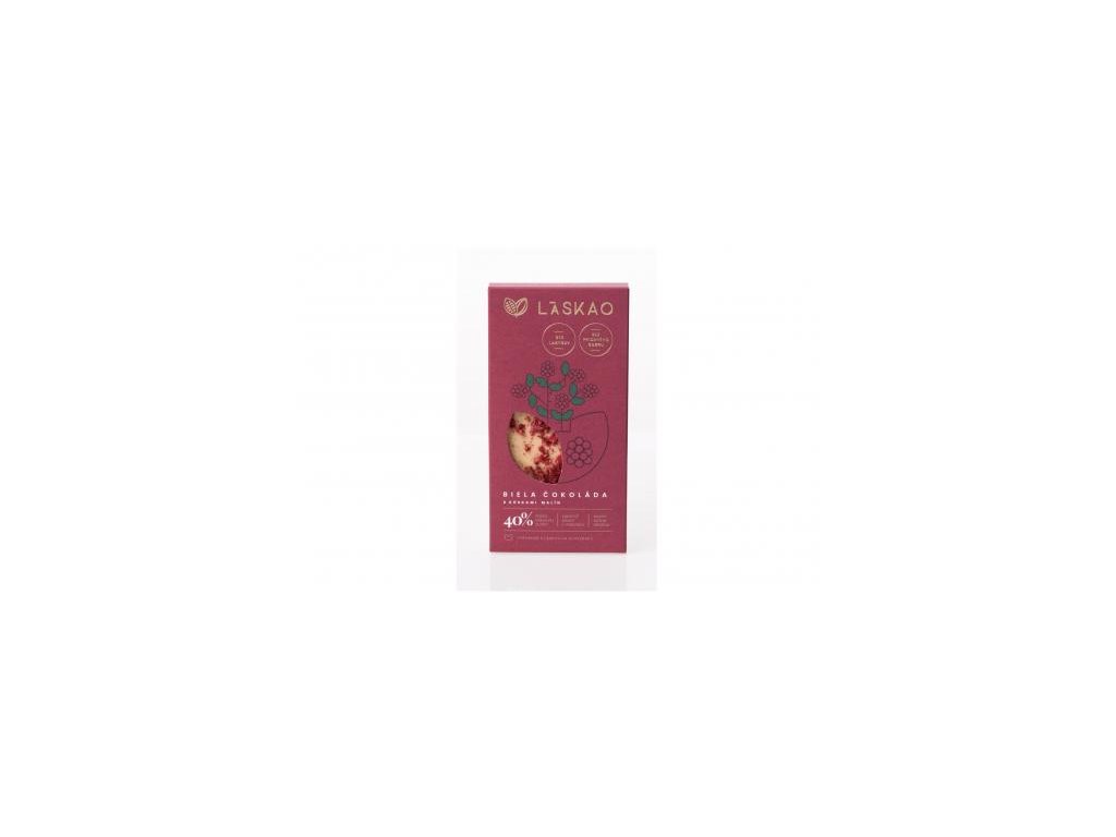 Čokoláda bílá s kousky malin 40% - LÁSKAO 75g