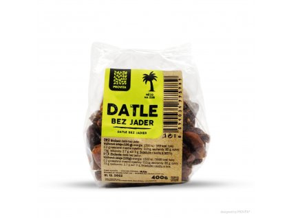 Podrobná specifikace: <!-- Generated by XStandard version 2.0.0.0 on 2025-02-12T18:41:23 --><p>Datlovník pravý plodí tmavě hnědé oválně plody, kterým říkáme datle. K domestikaci této rostliny došlo už v období mezi 3. a 4. tisíciletím př. n. l. Pochází z oblasti Mezopotámie a díky člověku se dnes pěstuje od severní Afriky přes Blízký východ až po pravý břeh řeky Indu. V těchto oblastech jsou datle významnou součástí kuchyně. Často se pečou na másle nebo se lisují do bochníku s názevm „adšu“.</p><p>Díky sušení se u datlí výrazně zlepšuje jejich trvanlivost. Některým strávníkům ale přijdou sušené datle příliš tuhé, v takovém případě je vhodné ještě před konzumací namočit datle do vody nebo mléka. Datle mají silnou sladkou chuť, která může být náhražkou jiných sladkostí nejen u dětí.</p><p><strong>Využití sušených datlí:</strong></p><ul><li>cukroví - rozmixované datle do pasty smíchejte s drcenými ořechy, strouhaným kokosem a třeba troškou kakaa, vzniklou směs uválejte do kuliček</li><li>datle lze přidat i do sladkých kaší nebo do kuskusu nasladko</li><li>marmeláda - 250 g datli namočíte do 200 ml horké vody, necháte 2 hodiny odstát, poté vše rozmixujete dohladka a máte rychle připravenou a exotickou marmeládu</li><li>sladké pečivo - nahrubo nasekané datle můžete dát před pečením do těsta a ozvláštnit tak třeba klasický recept na banánový chléb nebo jakékoli jiné sladké pečivo</li><li>raw dorty - rozmixované datle jsou díky své lepkavé a tuhé konzistenci často využívány jako základy pro nepečené dorty</li><li>sladké knedlíky - zkuste pro jednou naplnit knedlíky sušenými datlemi, výsledek bude výborný</li><li>domácí müsli - datle se mohou stát i součástí vašeho doma připraveného müsli či pečených müsli tyčinek</li><li>saláty - nejen v ovocných salátech, ale i jemně nasekané a v malém množství udělají datle v zeleninovém salátu zajímavou exotickou chuť</li><li>datle v čokoládě - datle namáčejte v rozpuštěné čokoládě, pokládejte na plech a nechte ztvrdnout</li><li>smoothie - namáčené datle je i snadné rozmixovat s dalšími ingrediencemi do hladkého koktejlu</li></ul><p>Pozor, ve výjimečných případech se může stát, že v datlích a jiných sušených peckovinách najdete pecku či její zbytek. Současné technologie zpracování ovoce bohužel nedokáží zaručit, že ovoce bude za všech okolností 100% bez pecek, a to i přes veškerou snahu a péči ze strany zpracovatele.</p>
