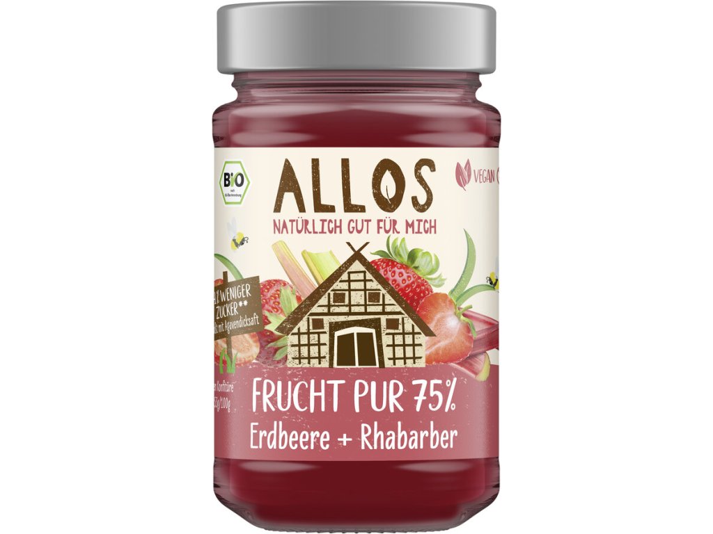 Allos Fruchtkonfitüre Erdbeere und Rhabarber 250ml Bio