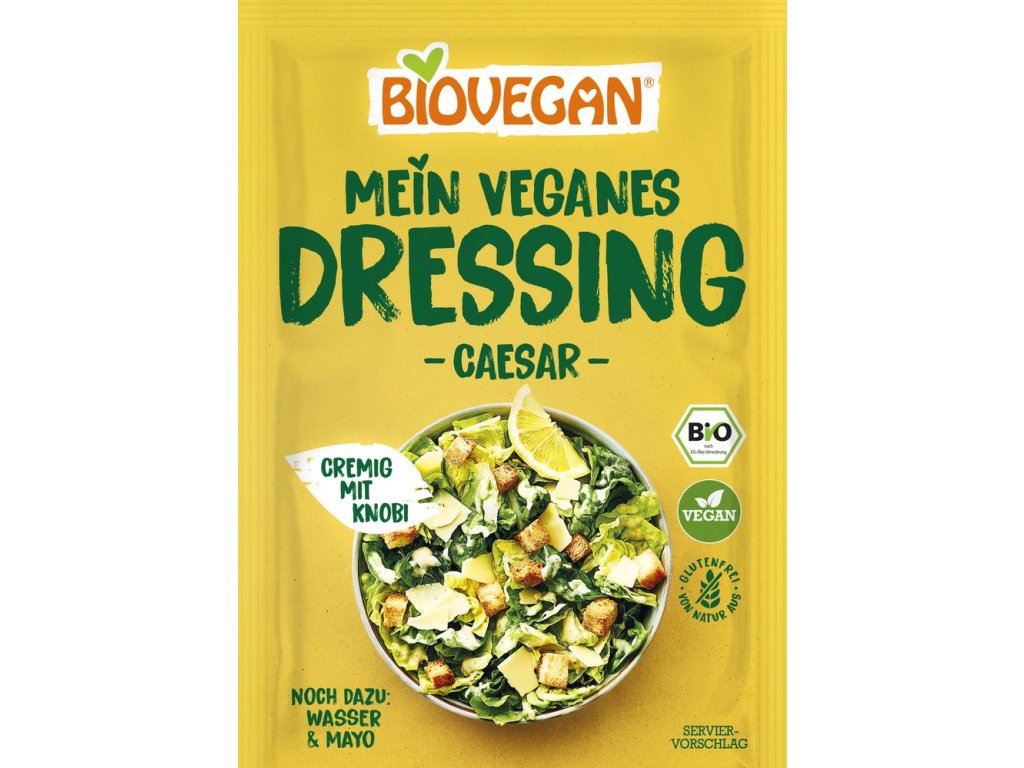 Dein veganes Caesar-Dressing in Bio-Qualität ist eine herrlich cremige Spritze für den Salatklassiker schlechthin und sorgt für abwechslungsreiche Genüsse in deinem Alltag. Dank Cashewmehl, Hefeflocken und Knoblauch ist das Dressing nicht nur besonders cremig, sondern erhält auch einen typischen „käsigen“ Geschmack. Einfach etwas Wasser und vegane Mayonnaise dazugeben und fertig ist das Dressing.