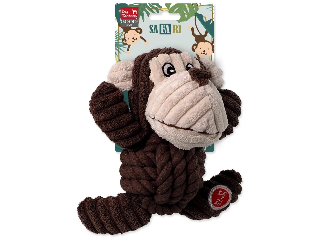Dog Fantasy Safari Affe Spielzeug mit Knoten, Quietsche, 18 cm