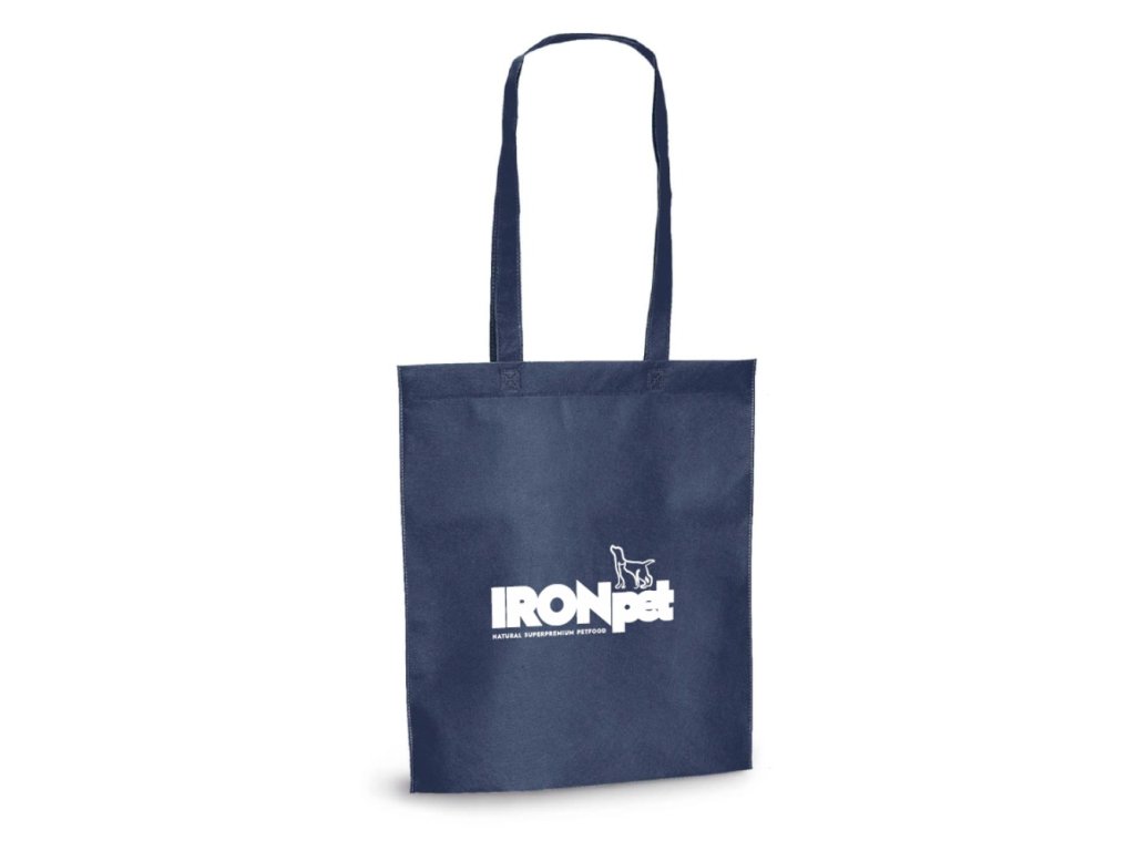 Das IRONpet-Logo hebt sich deutlich vom königsblauen Hintergrund der Tasche ab.