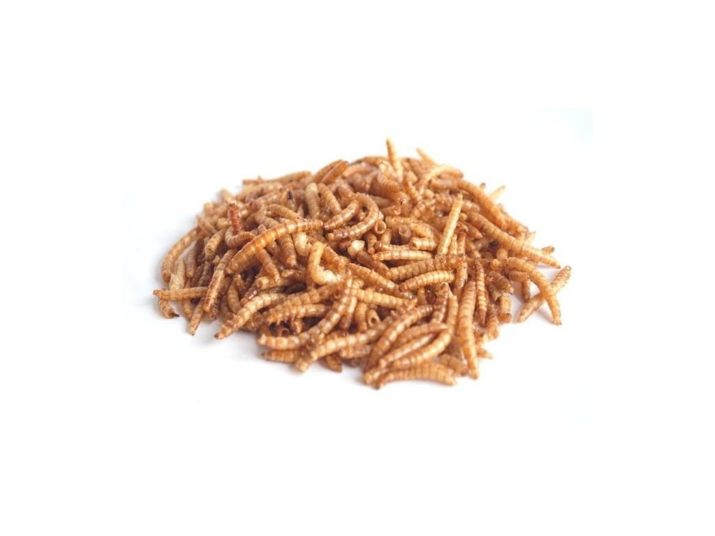 Getrocknete Mehlwurmlarven sind ein 100 % natürliches Ergänzungsfuttermittel für Vögel, Fische, Eidechsen, Leguane, Schildkröten, Frösche, Igel, Hamster, Mäuse, Ratten und andere Kleinsäuger, Katzen und Hunde.