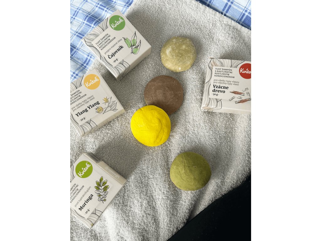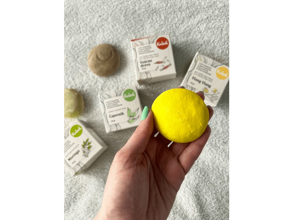 Dieses konzentrierte feste Shampoo mit dem exotischen Duft der Ylang-Ylang-Blüte ist vor allem für Besitzer von hellem und blondem Haar gedacht. Dank des Gehalts an ätherischem Zitronenöl und Kurkumapulver verleiht die regelmäßige Anwendung Ihrem Haar einen wunderschönen Glanz und einen hellen Farbton. Darüber hinaus stärkt Kurkuma das Haar, regt sein Wachstum an und hilft bei Schuppenproblemen. Kvitek hat sich erneut der Shampoo-Formel angenommen und ihr einen pflegenden Inhaltsstoff hinzugefügt, um Ihr Haar noch besser zu pflegen. Sie müssen sich also keine Gedanken über die Wahl eines anderen Kosmetikprodukts machen.Zusätzliche Parameter