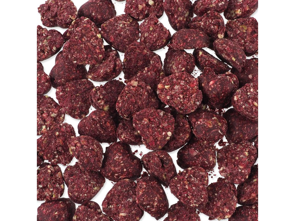 Zutaten: getrocknete Erbsen, getrocknete Rote Bete 10 %, pflanzliche Stärke.