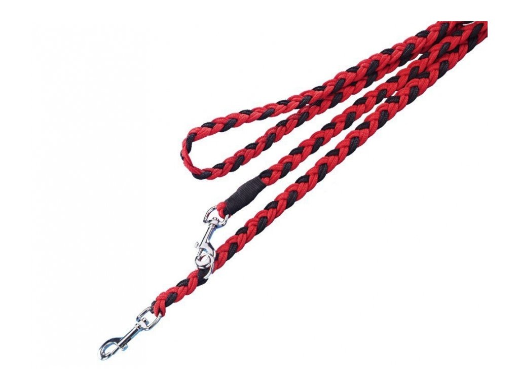 Solide geflochtene Leine von Nobby. Nylonmaterial. Geeignet für temperamentvolle Hunde und kann auch als elegante Leine verwendet werden. Sehr solide Ausführung. Länge 2m, Breite 16mm. Durch die Metallösen an der Leine ist eine Umstellung auf 3 verschiedene Längen möglich. Farbe rot-schwarz.Zusätzliche Parameter