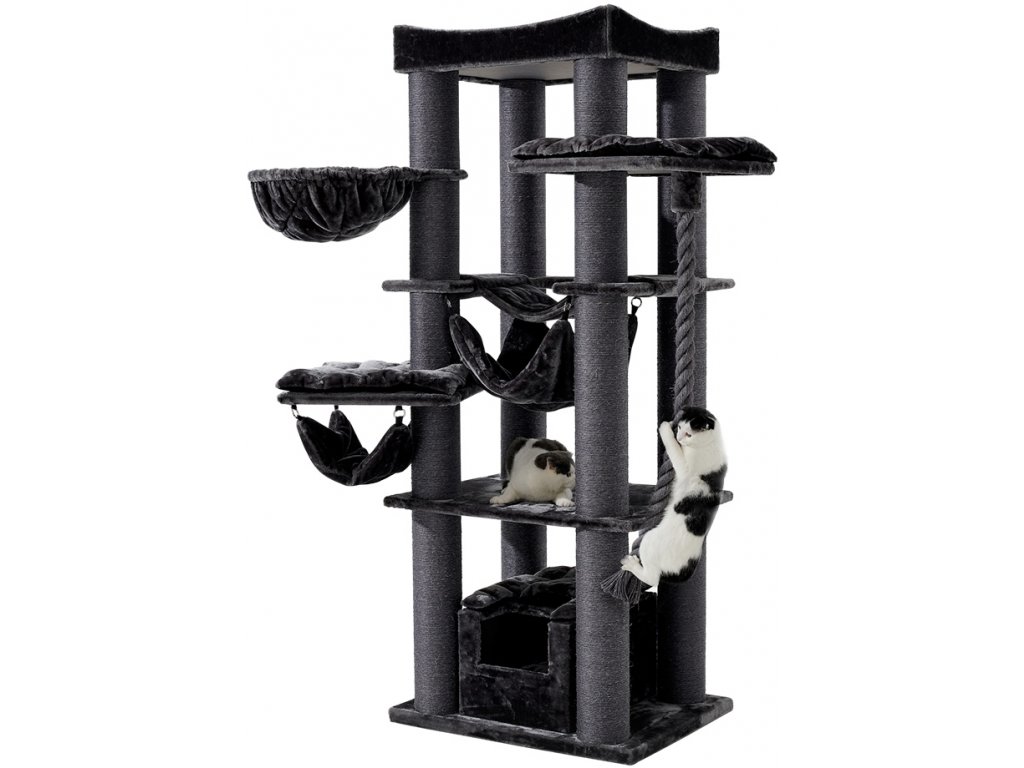 Jede Katze muss ihre Krallen schärfen. Daher sollten ihr in der Wohnung, in der sie untergebracht ist, ausreichend Möglichkeiten zur Erfüllung dieses Bedürfnisses gegeben sein. Andernfalls ist sie gezwungen, eine für ihren Besitzer unangenehme Alternative zu finden, beispielsweise: Sofa, Möbel, Sessel, Bett oder Teppich. Parameter des Kratzbaums Nobby Rubi: Höhe 197 cm Farbe Dunkelgrau mit dunklem Sisal Größe der Sisalstämme ø 15 cm Basis 60 x 80 x 4 cm unteres Haus 48,5 x 37 x 30 cm Liegefläche durchgebogen ø 45 cm obere Liegefläche 58 x 68 cmZusätzliche Parameter