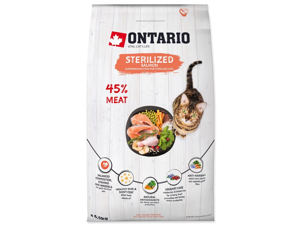 Ontario Sterilisierter Lachs für Katzen, 6,5 kg