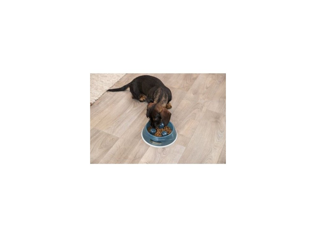 - Ein spezieller Kunststoffnapf mit Vorsprüngen im Inneren verhindert, dass der Hund Futter verschluckt.