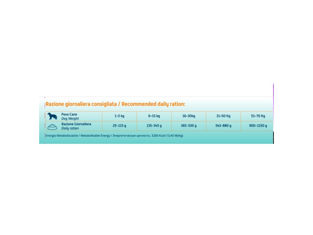 Fütterungshinweis: Kann trocken oder mit Wasser oder Brühe angefeuchtet serviert werden. Es wird empfohlen, bei der Umstellung von einem anderen Futter die Dosis schrittweise zu erhöhen. Dem Hund muss immer ein Napf mit frischem Wasser zur Verfügung stehen.