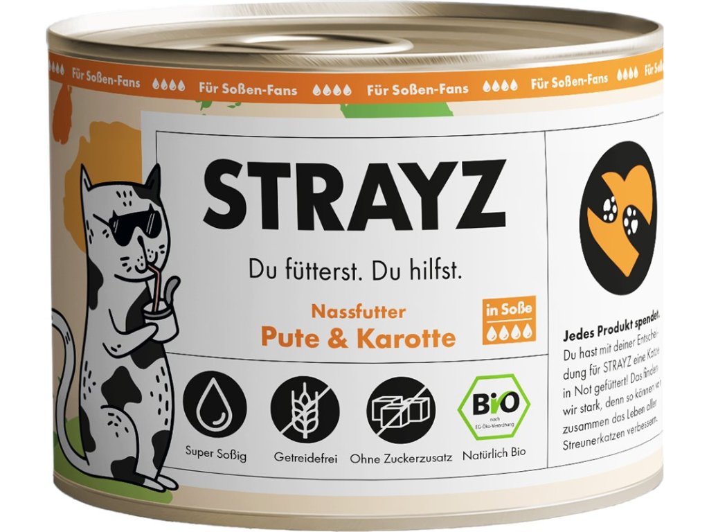 STRAYZ Konzerva pro kočky krůta a mrkev v omáčce 200 g bio