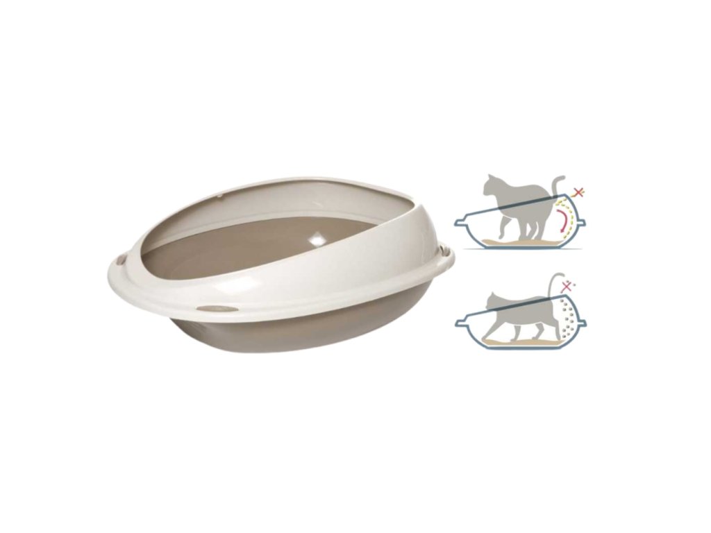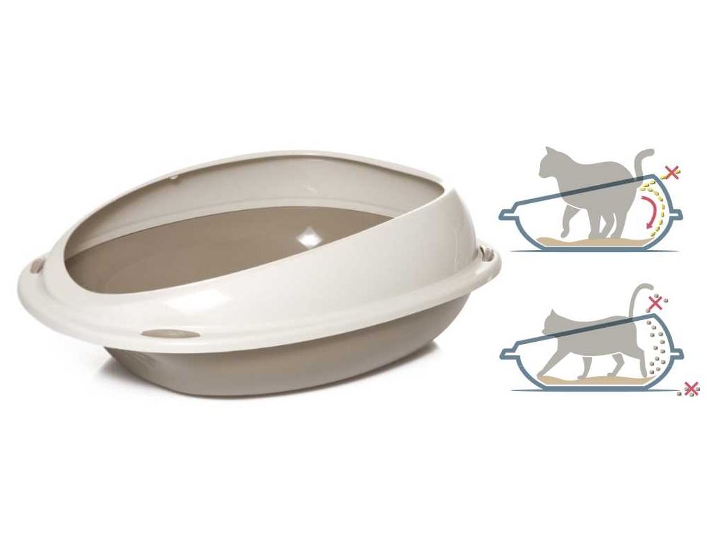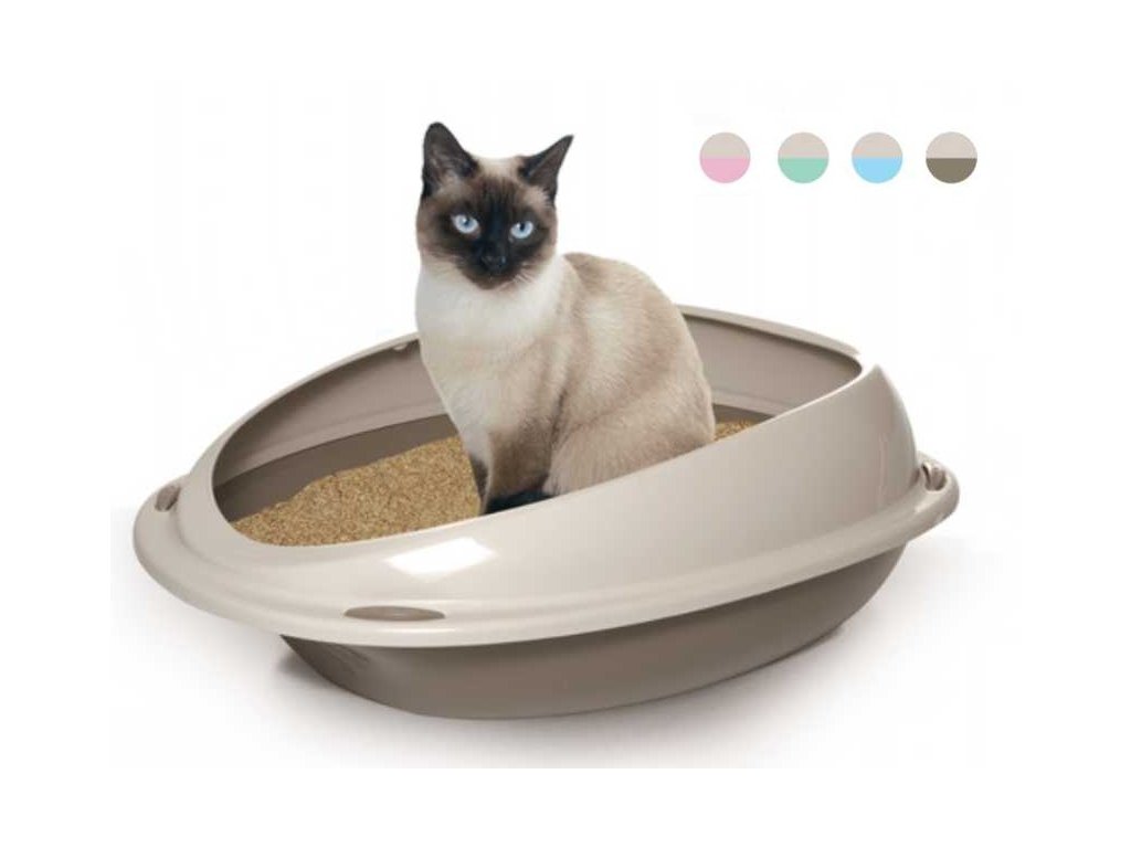 Ovale Katzentoilette aus hochwertigem, langlebigem Kunststoff. Erhöhte Rückenlehne für einfacheres Aufbewahren der Streu im Inneren.
