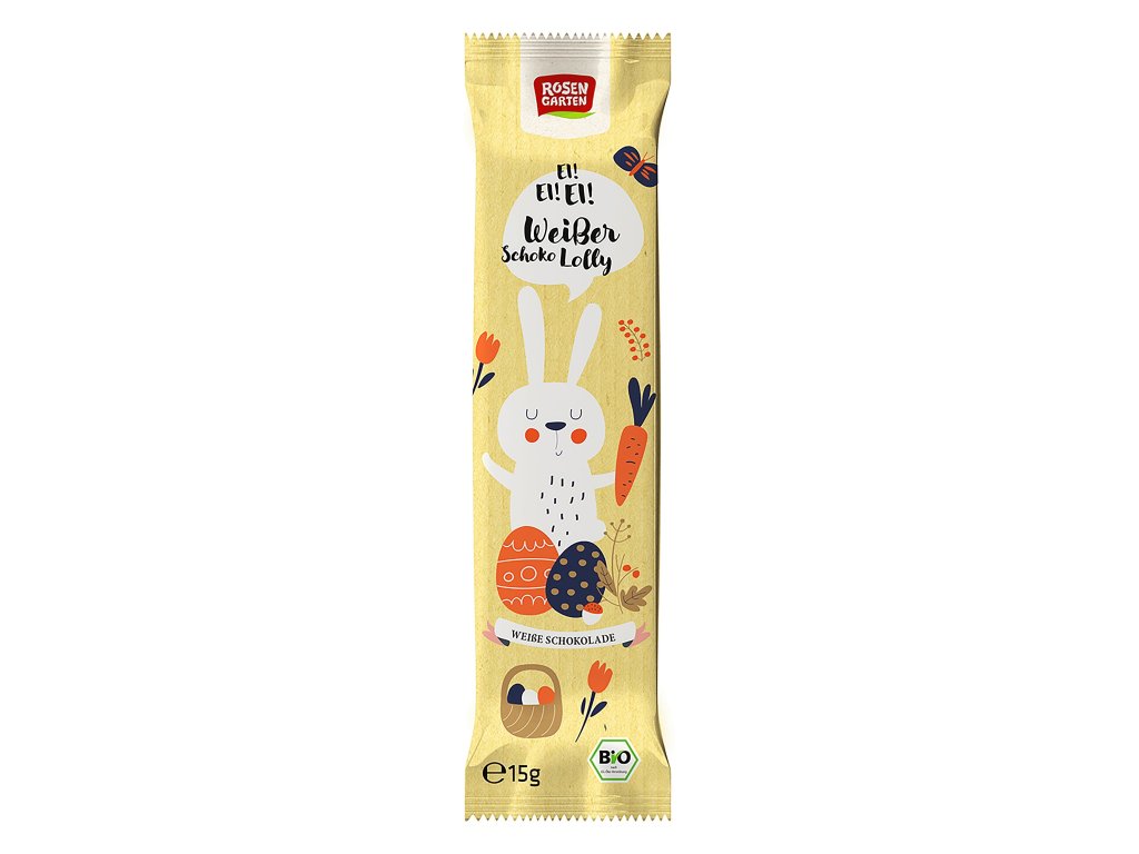 Weißer Schokoladenhasenlutscher 15 g BIO ROSENGARTEN