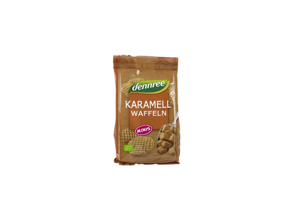 Pro jemně křupavé mini karamelové vafle dennree jsou zlatohnědé vafle pečené z nejlepších organických surovin a ochucené lahodnou náplní z karamelového sirupu.