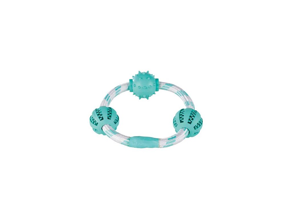 DentaFun bavlněný kruh se 3 míčky, ø 20 cm/ø 5 cm, přírodní guma