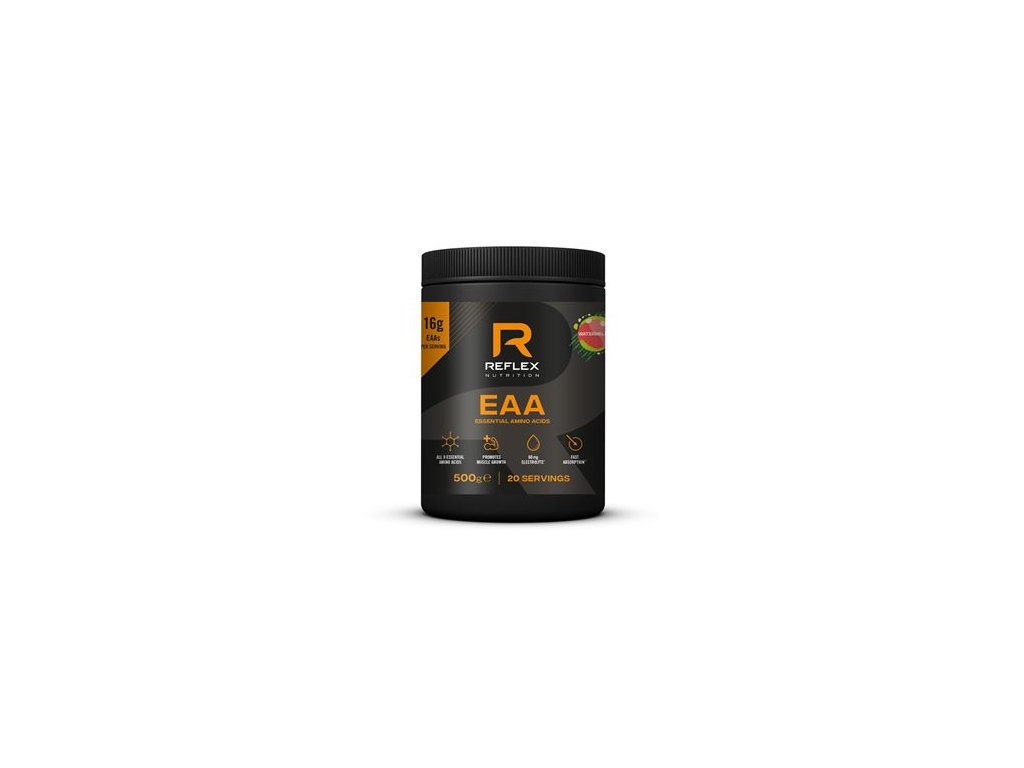 EAA Reflex Nutrition nabízejí 16 g EAA na jednu 25 g dávku! Jde tak o perfektní zdroj živin pro namáhané svaly, které po tréninku pro svůj růst a regeneraci potřebují esenciální aminokyseliny jako stavební látky. Komplex obohacuje hořčík a draslík (elektrolyty), které tělo během výkonu ztrácí a je tak třeba je efektivně doplňovat. Vlastnosti hořčíku a draslíku souvisí s činností svalů. Podobné je to také s obsaženým vitamínem B6, jeho vlastnosti souvisí s energetickým metabolismem. Obsažený Bioperin® pomáhá ostatním složka se vstřebáním.