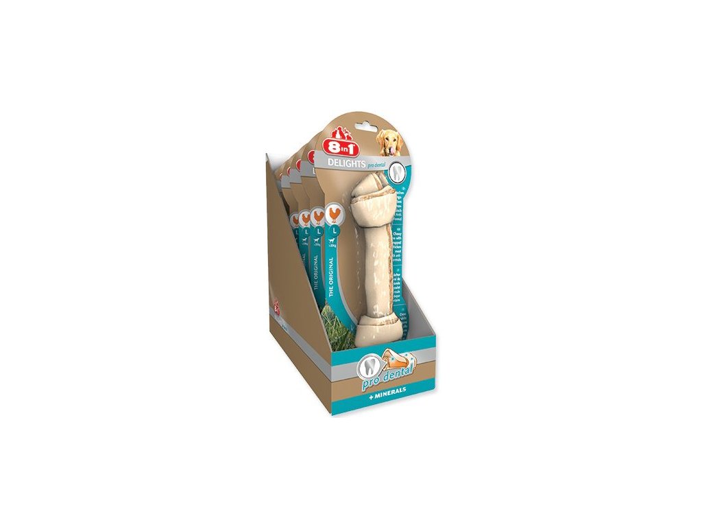 Chewing bone with minerals and dried chicken inside, supplementary food for adult dogs from 20 to 40 kg of weight.