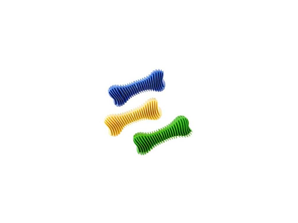 Bone - DENT - ribbed, scentedDental toy for dogs - ribbed bone. Thanks to its shape, it wipes plaque from teeth during play. It therefore helps with daily hygiene.