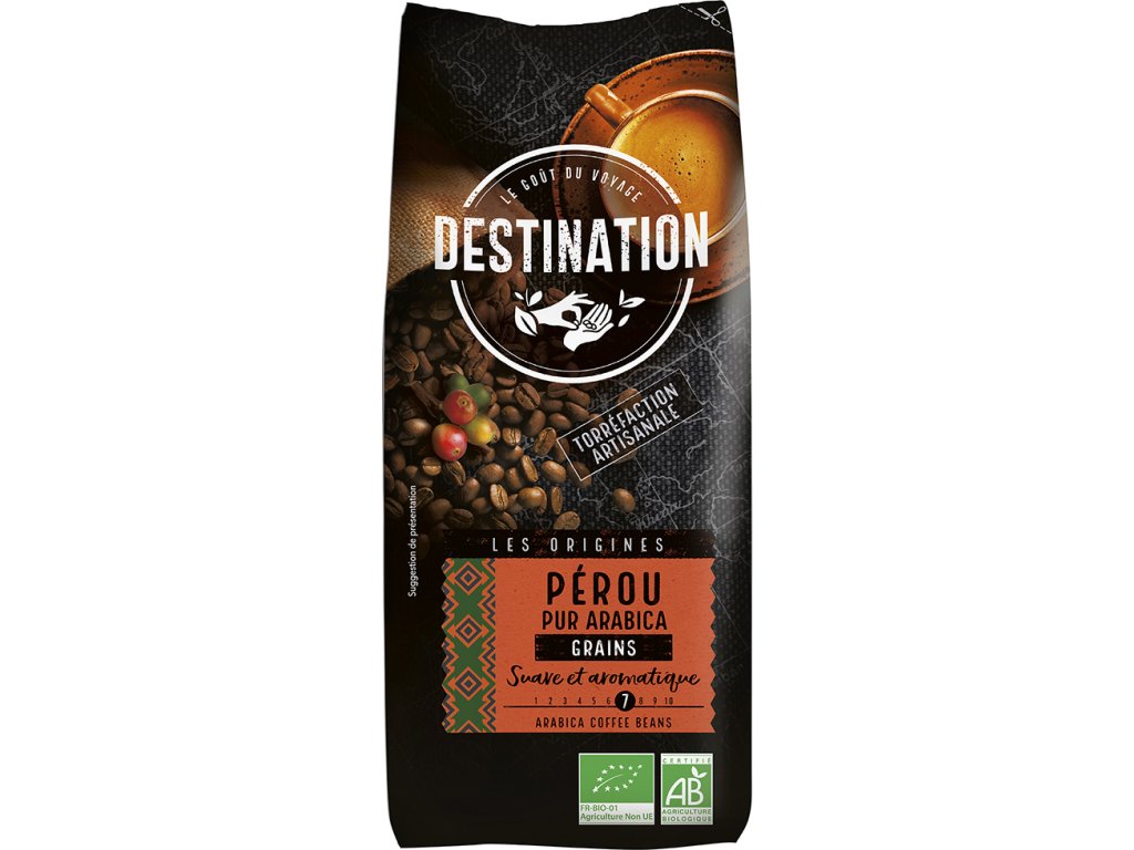 The Les Origines coffee range by Destination consists of single origin coffees from different regions. The aromatic and fragrant Peruvian coffee is grown along the Andes mountain range. The local volcanic soil is rich in organic compounds and minerals and gives life to a sweet coffee with a balanced body and a medium finish in the mouth. The taste of the coffee is perfectly developed thanks to the artisanal roasting of DESTINATION coffee, when the beans are roasted more slowly at a lower temperature than conventional industrial coffees. Coffee beans grown in accordance with organic farming without the use of controversial pesticides were used to produce this coffee.