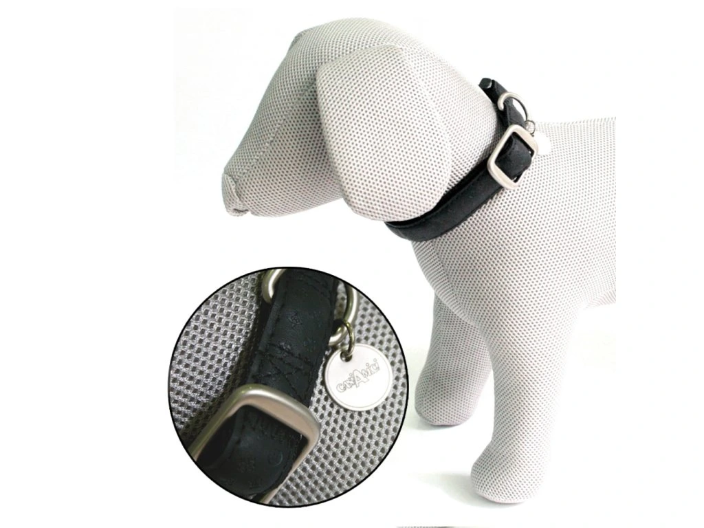 Elegant and durable collar made of soft imitation leather with embossed decorations.