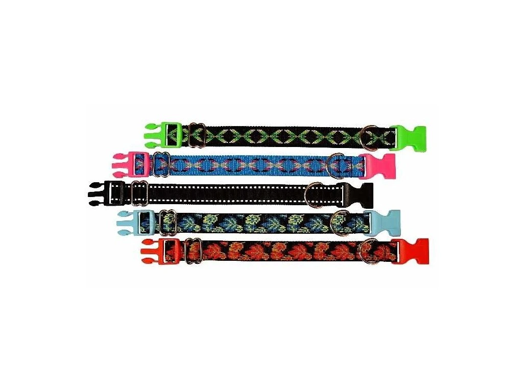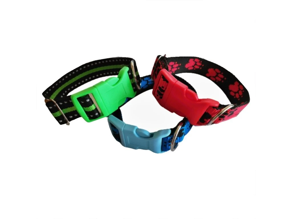 Eyelet for attaching a leash. The collar circumference is adjustable. Fastens with a plastic buckle.