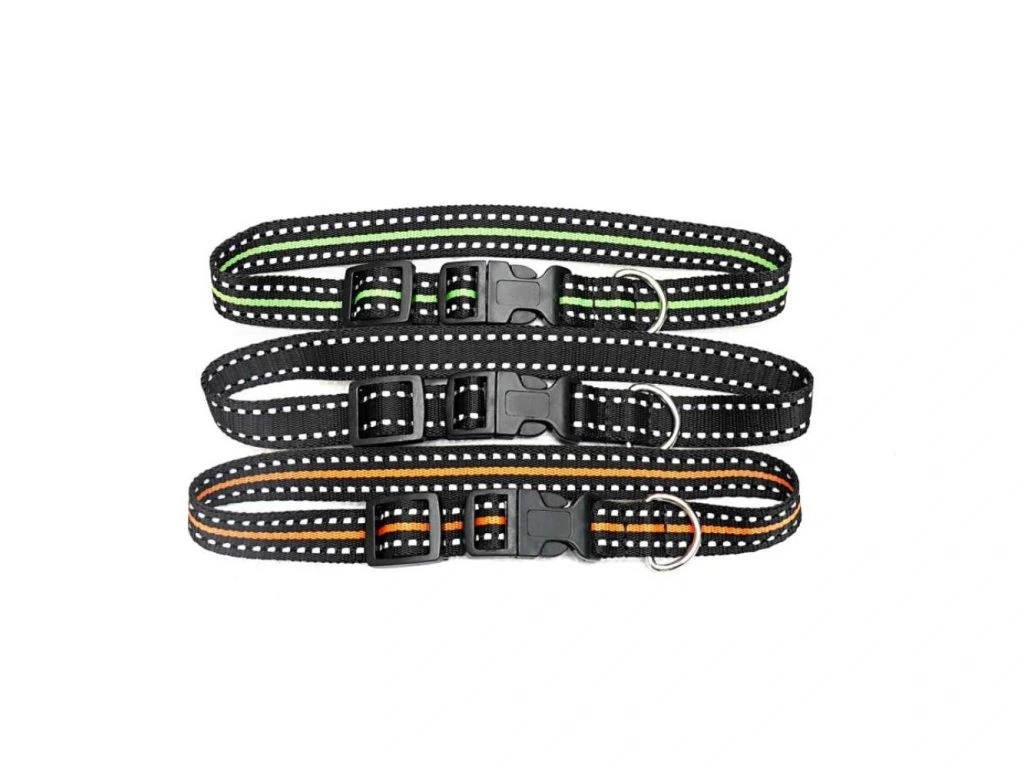 A sturdy and high-quality strap collar with reflective stitching.