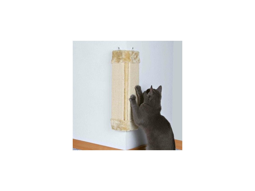 Corner wall-mounted scratching post with plush end, 23 x 49 cm, sisal/plush, beige