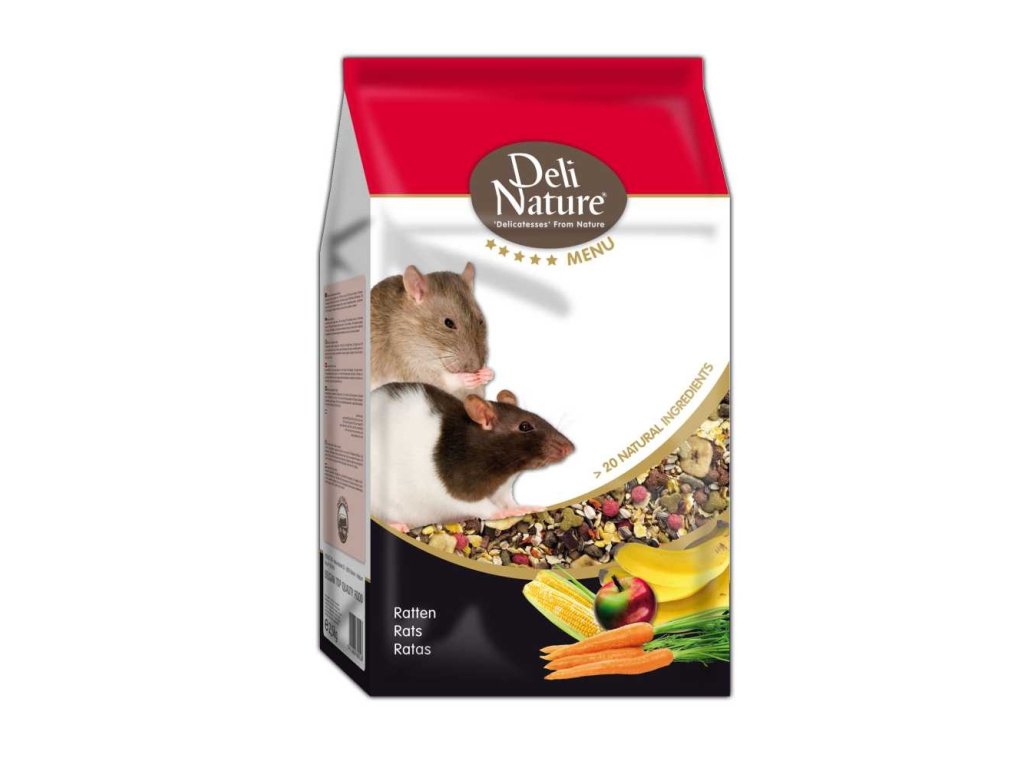 Rats are omnivores and prefer a varied diet. Deli nature 5*menu Rats food is enriched with extruded granules, which are a high-quality and easily digestible source of animal protein that rats like very much.