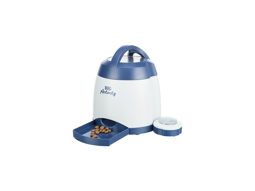 - higher difficulty is given by the greater distance between the trigger button and the treat dispenser (both parts can also be placed in other rooms)