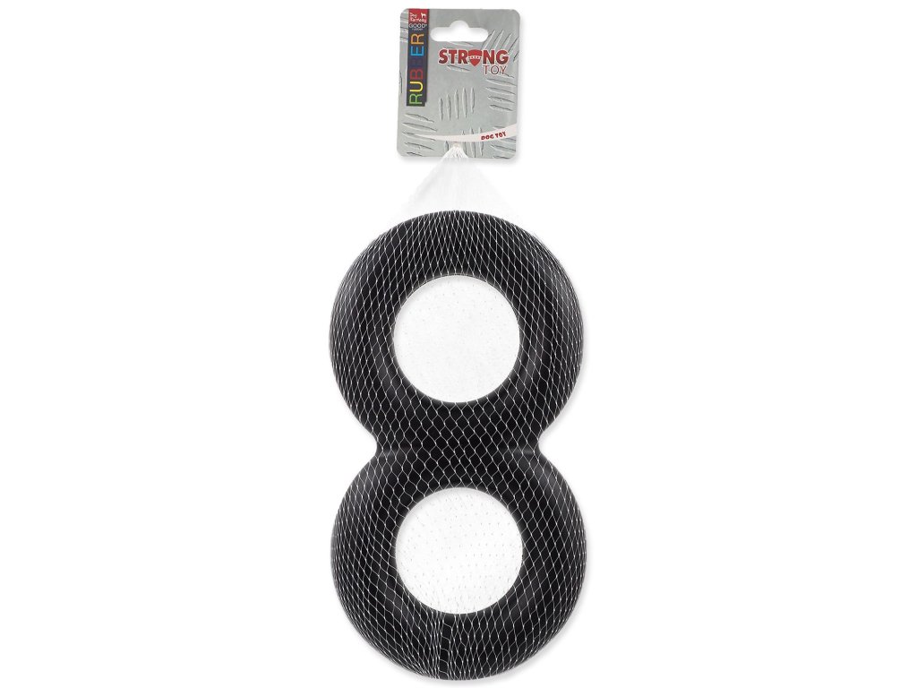 A toy made of hard rubber suitable for playing together with your dog, e.g. tug-of-war and fetch.
