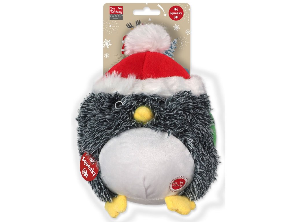 A stylish holiday toy for dogs in the form of a large round penguin with a Christmas hat that also whistles. It will perfectly entice your dog to play and keep him entertained even on long winter evenings. And since play is key to physical and mental health, this toy is a great way for your dog to keep it.