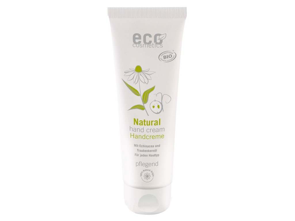 Gentle, 100% natural hand cream from Eco Cosmetics protects and cares for the skin of your hands and nails. It is enriched with organic grape seed oil and organic echinacea extract. The cream hydrates your skin, leaving it soft and supple for a long time.Additional parameters