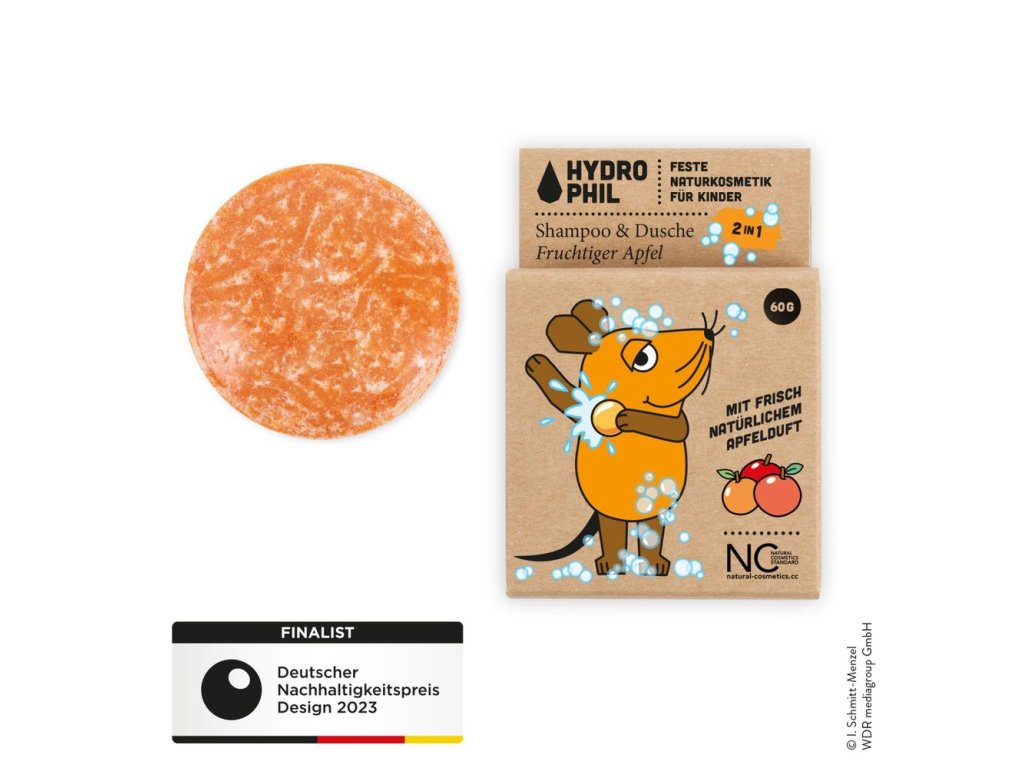 Sustainable solid body care for little eco-lovers! The refreshing solid shampoo and shower gel with mouse 2in1 ensures thorough cleansing of the skin and hair. Thanks to the extra caring ingredients of almond oil, shea and cocoa butter, the hair is particularly easy to comb. With the fruity scent of regional apples suitable for children, ecological body care no longer stops at the children's toilet. A: By purchasing one of our products, we can support climate protection projects around the world together with ClimatePartner.
