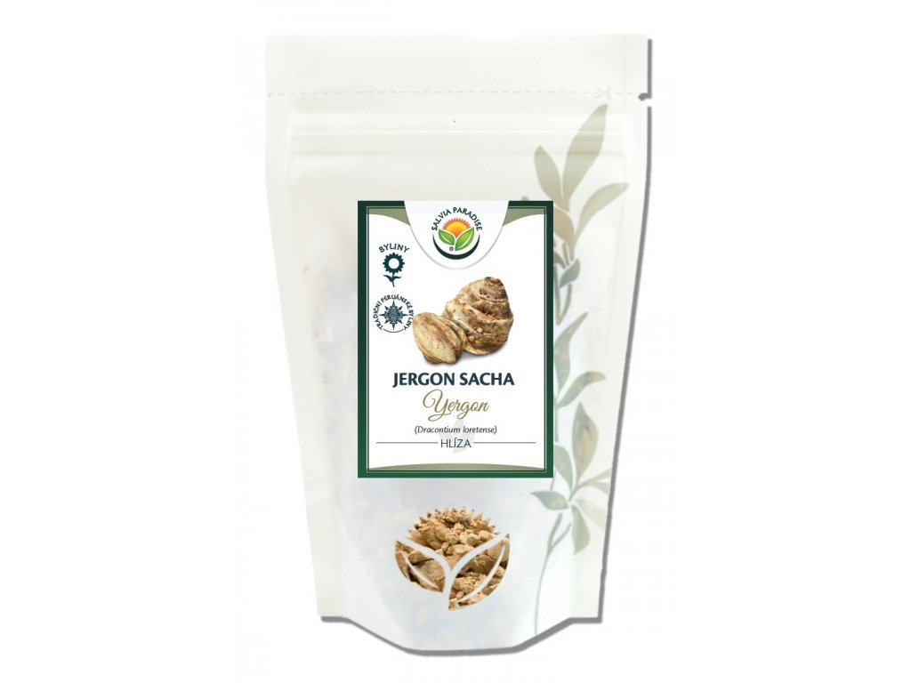 Yergon Sacha is a powerful plant growing up to two meters high. It is native to the Amazon rainforests and is known by the Latin name Dracontium spruceanum syn. loretense. The plant consists of a powerful tuberous root and a strong stem that resembles a tree trunk with one huge leaf. It is a plant that is part of traditional Peruvian medicine.