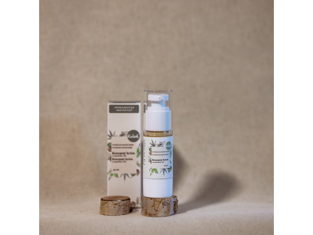 | Složení: | Mentha Piperita Leaf Water (bylinková voda – Máta), Cannabis Sativa Seed Oil (konopný olej), Corylus Avelana Seed Oil (lískový olej), Vitis Vinifera Seed Oil (hroznový olej), Cetearyl Olivate, Sorbitan Olivate (estery mastných kyselin z olivového oleje), Lecithin (sójový lecitin), Glycerine (rostlinný glycerin), Arctium Lappa Root Powder (lopuchový extrakt), Panthenol (provitamin B5), Melaleuca Alternifolia Leaf Oil (éterický olej Čajovník), Cymbopogon Flexuosus Oil (éterický olej Lemograss), Mentha Piperita Oil (éterický olej Máta), Levulic Acid (kyselina levulová – přírodní rostlinná kyselina), Sodium Levulinate (sůl kyseliny levulové), p-Anisic Acid (kyselina anýzová – přírodní rostlinná kyselina), Tocopherol (vitamin E), Xanthan Gum (xantanová guma), Citric Acid (kyselina citrónová), Sodium Hydroxide (hydroxid sodný – úprava pH), Citral*, Geraniol*, Linalool*, Limonene*. *z přírodních éterických olejů |