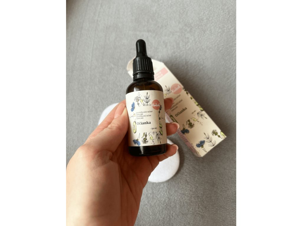 Tired eyes, red veins and swollen eyelids always tell you - have you been blinking into the light of your monitor all day? :) Whether your eyes are irritated from everyday computer work, a dusty garden or allergies, it's a good idea to have a 100% natural herbal eye compress from the Slovak company Kvitek on hand. It's not called Očianka for nothing - it's made from nightshade extract (in Slovak, očianka rostkovova), which is known for its soothing effects on overworked eyes. The compress also has extraordinary properties thanks to the floral water from blue cornflower and effective extracts from horsetail and cucumber. The fragrant elixir gently treats and refreshes the sensitive eye area, which is thinner and less resistant than the rest of the face, reduces swelling and smoothes fine wrinkles.Additional parameters