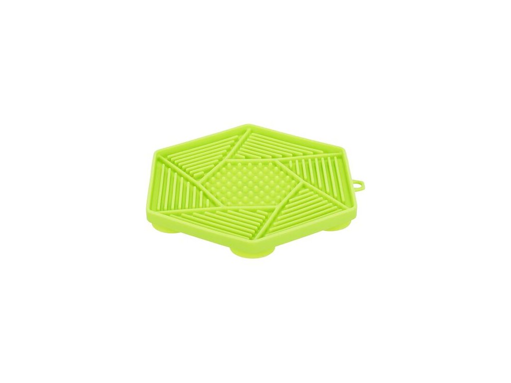 Lick´n´Snack HEXAGON with suction cups - slow feeding mat, 17 cm, TPR/plastic, green