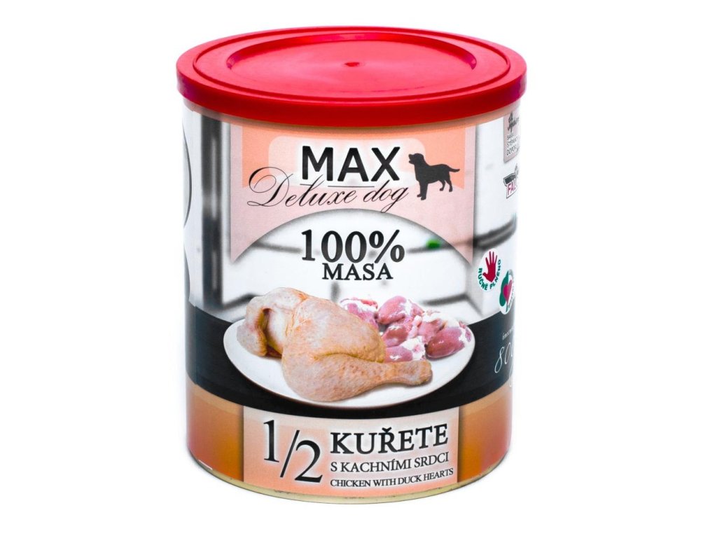 MAX Deluxe Dog 1/2 chicken with duck hearts, canned 800 g